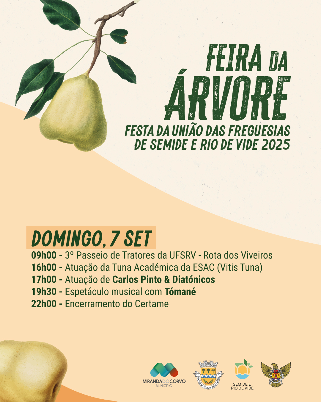 De 5 a 7 Setembro de 2025 - Feira da Árvore / Festa da União das Freguesias de Semide e Rio Vide 2025.