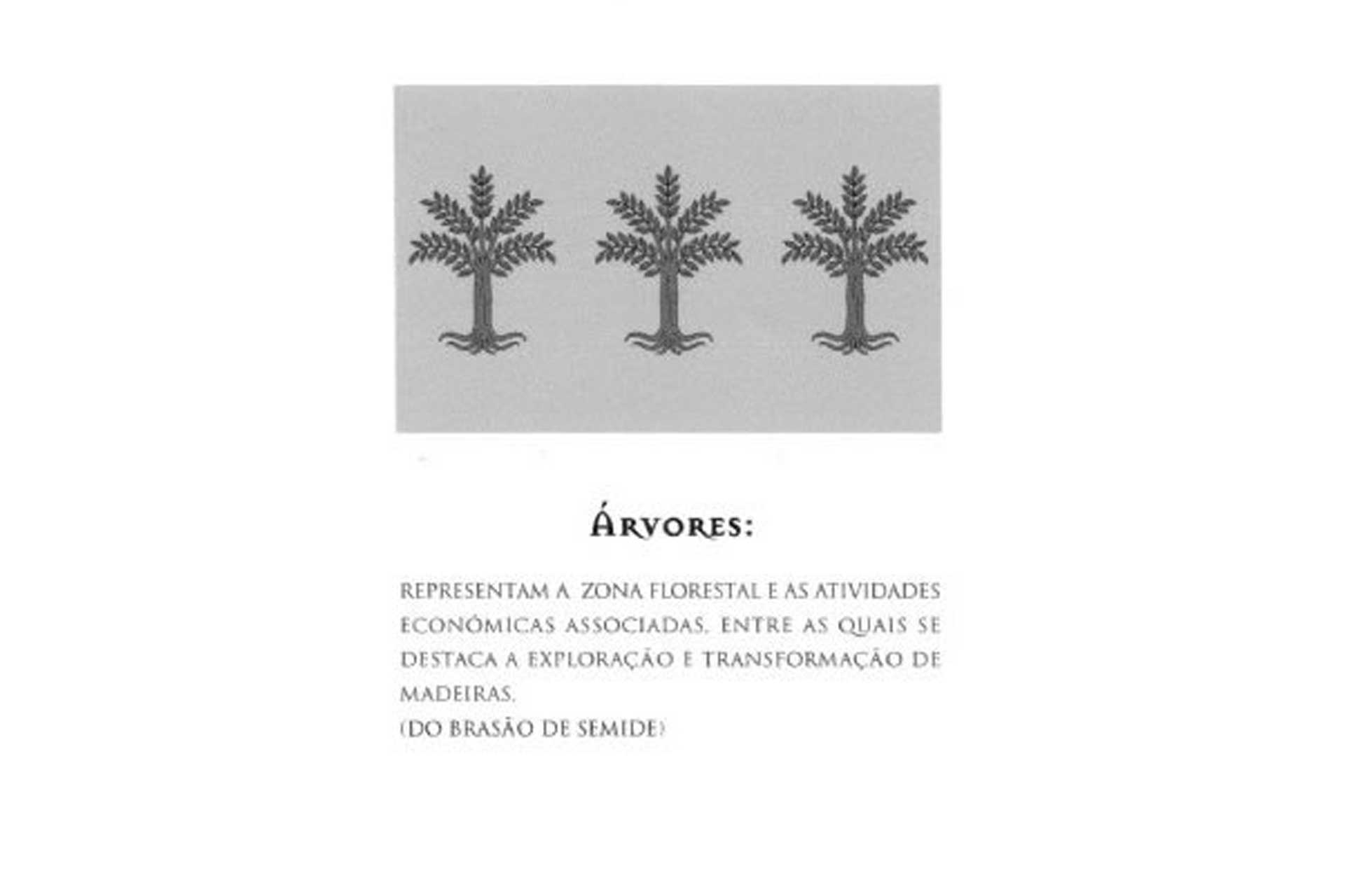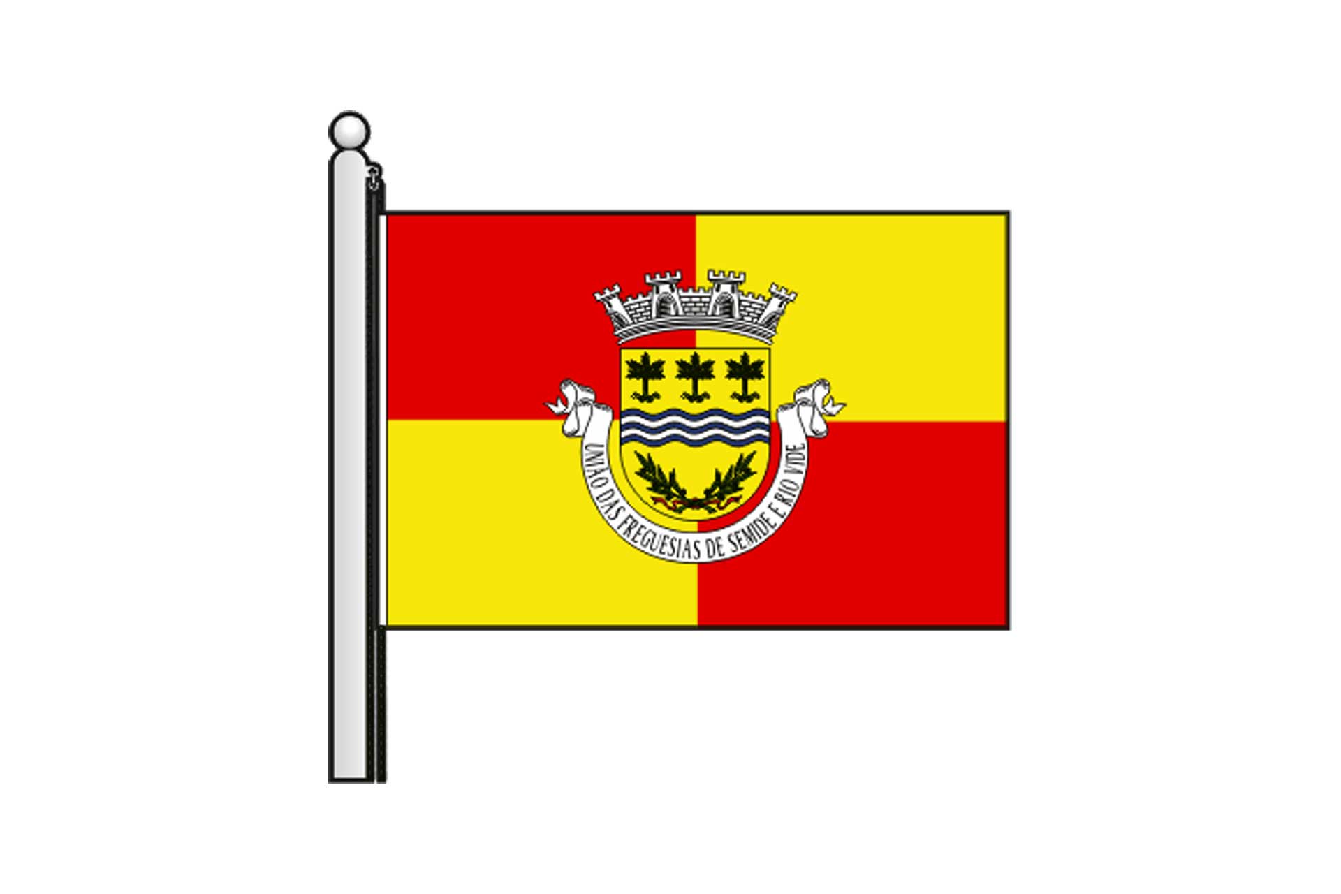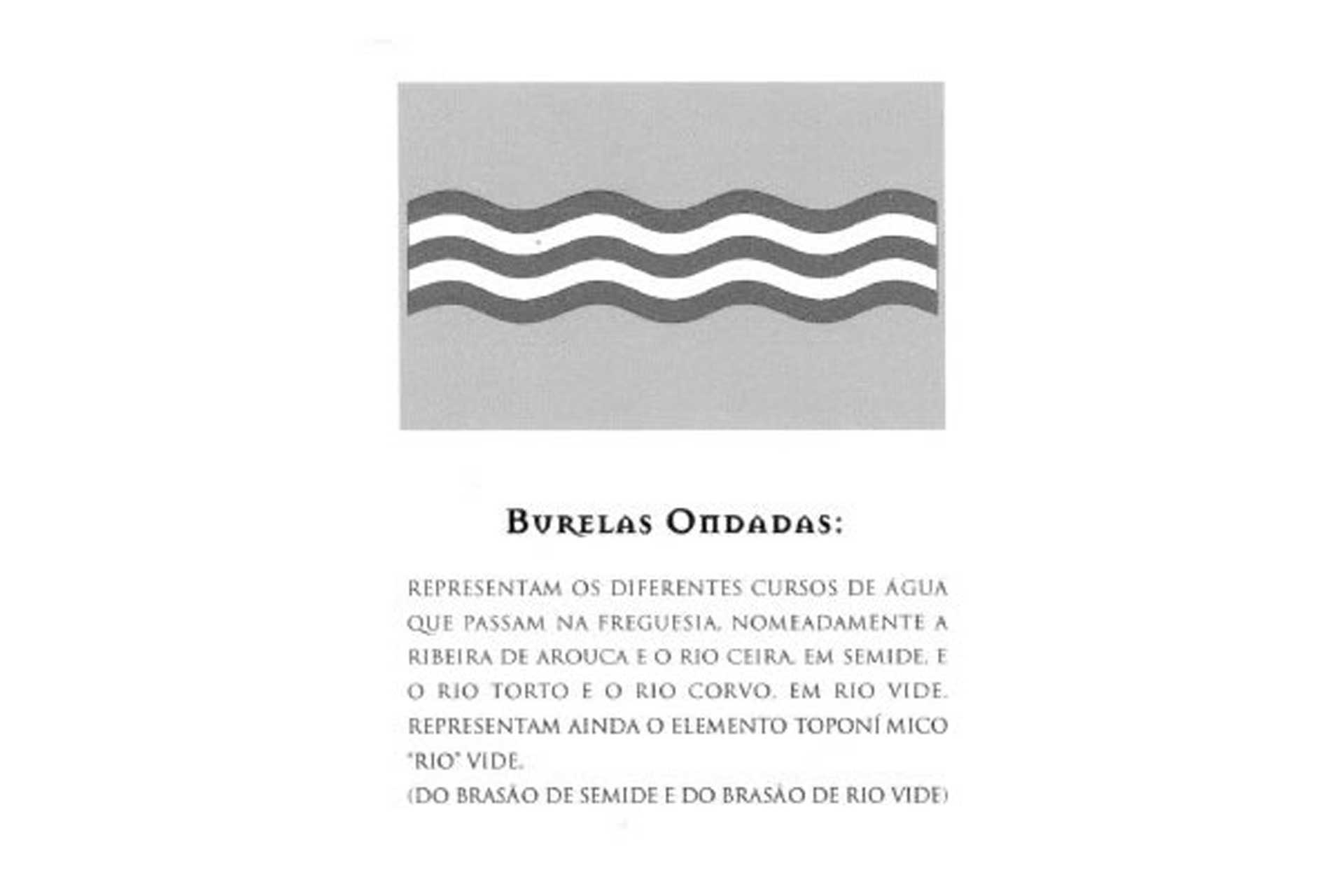 Escudo de ouro, faixa ondada de azul e prata de cinco tiras ondadas, acompanhada em chefe de três árvores de verde alinhadas em faixa, e em campanha de dois ramos de oliveira de verde frutados de negro com os pés passados em aspa e atados de vermelho. Coroa mural de prata de quatro torres. Listel de prata com legenda em letras a negro maiúsculas “ UNIÃO DAS FREGUESIAS DE SEMIDE E RIO VIDE “.