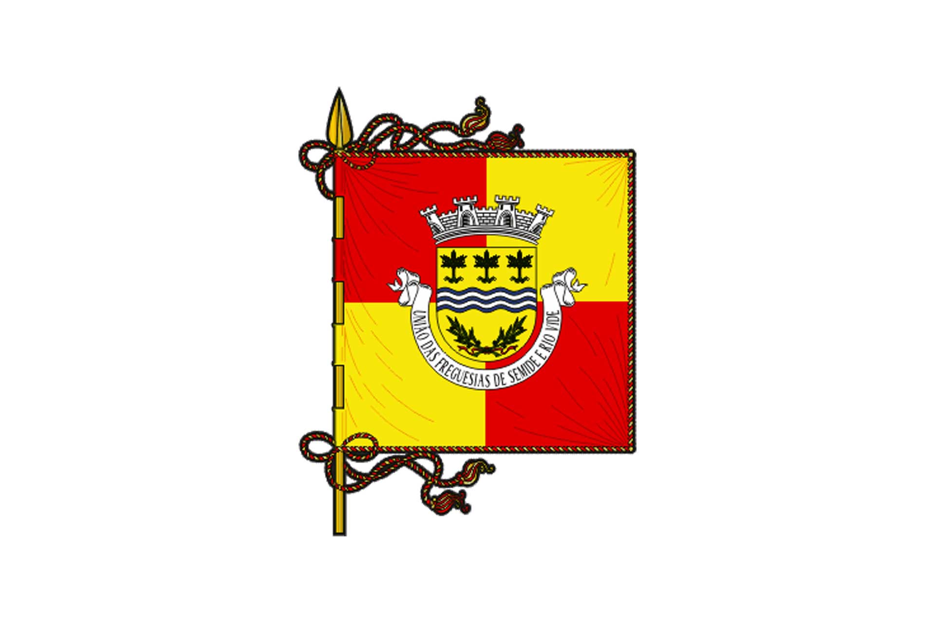 Esquartelada de vermelho e amarelo. Cordão e borlas de ouro e vermelho. Haste e lança de ouro.