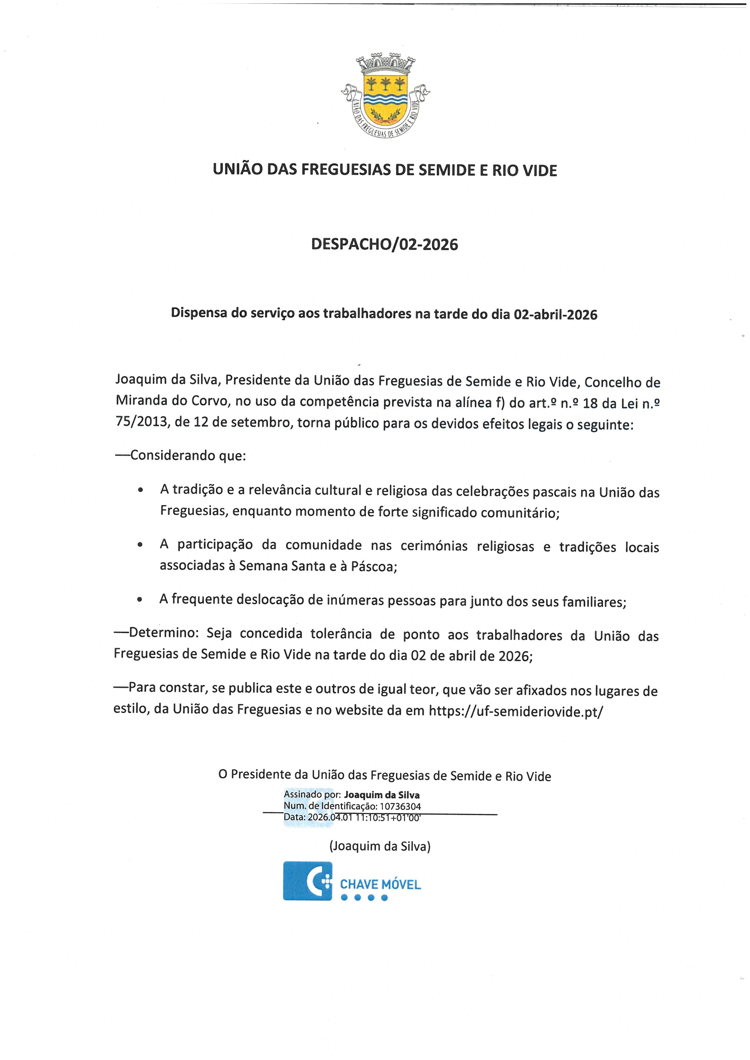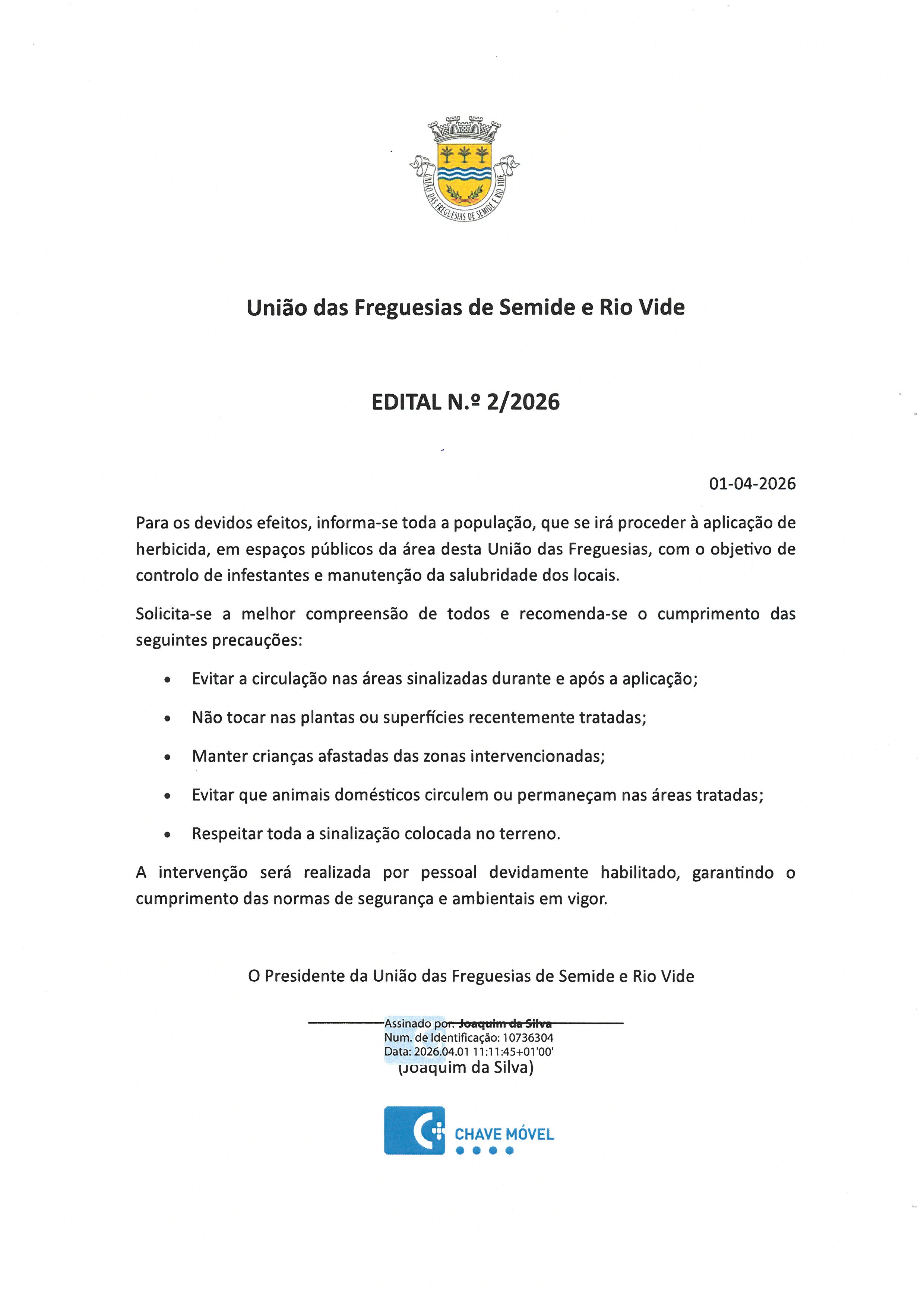 O Presidente da Junta União de Freguesias de Semide e Rio Vide
